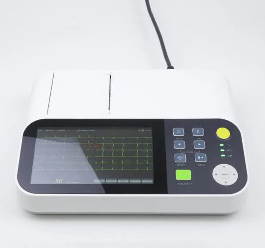 2.A aquisição simultânea de 12 leads, exibição em ecrã completo de 12 canais de formas de onda de ECG. 7' tela a cores, ambos botão de pressão e toque operação ((opcional).